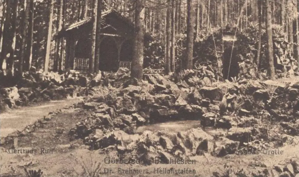 ALTE POSTKARTE GÖRBERSDORF DR. BREHMERS HEILANSTALTEN GERTRUDS RUH GROTTE