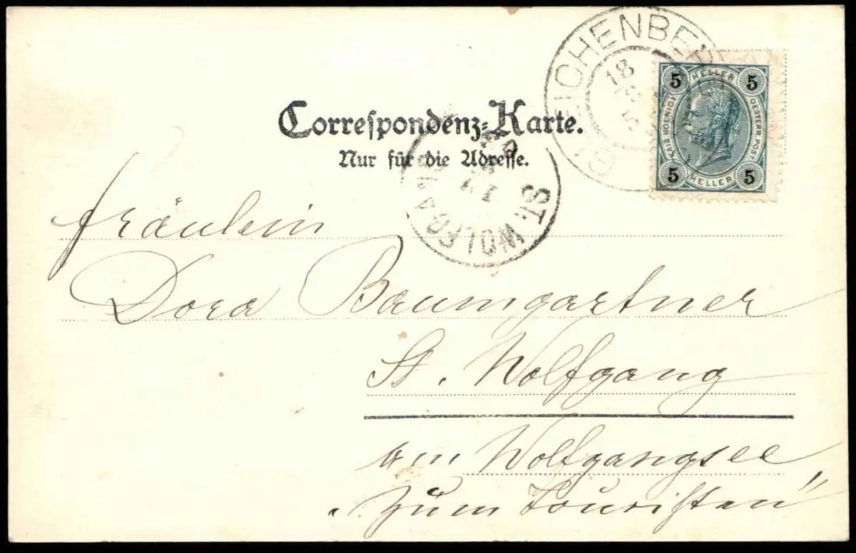 Gelaufen: 05.11.1903 mit Stempel Gleichenberg sowie Ankunftsstempel St. WolfgangErhaltung (s. Scan): gut - sehr gut / 916690