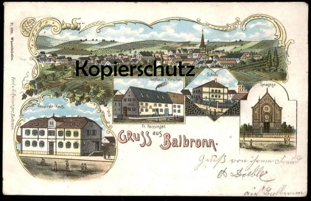 ALTE POSTKARTE GRUSS AUS BALBRONN SYNAGOGE SCHULE GEMEINDE-HAUS GASTHOF ZUM HIRSCHEN