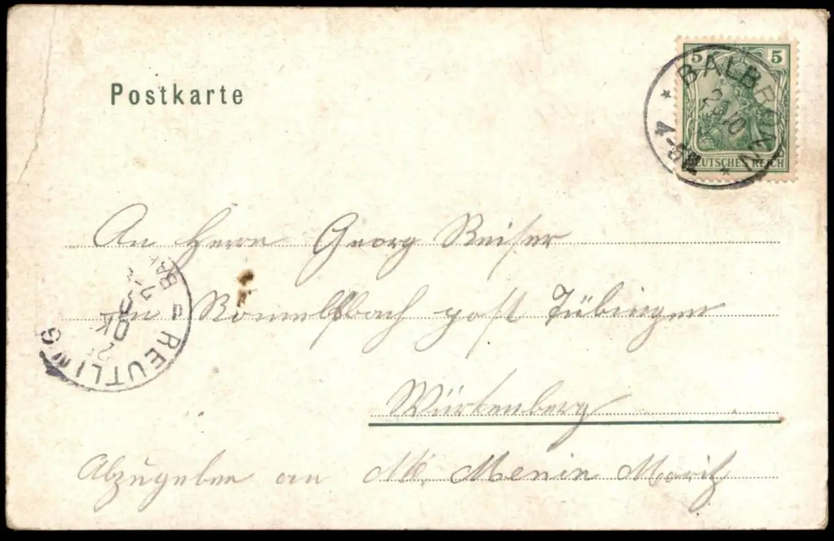 Gelaufen: 26.10.1904 mit Stempel Balbronn nach Rommelsbach Tübingen Stempel Reutlingen