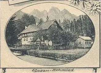 ALTE POSTKARTE GRUSS AUS GOSAU SCHMIED MÜHLE GEGEN DIE DONNERKOGELNVerlag: unbekannt