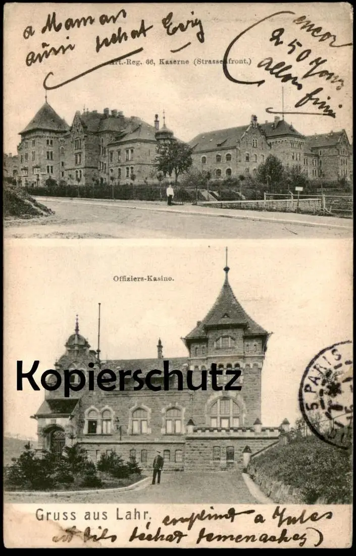 ALTE POSTKARTE GRUSS AUS LAHR ART.-REGIMENT 66 KASERNE OFFIZIERS-KASINOVerlag: Wilh. Steinberg, Breslau 1905