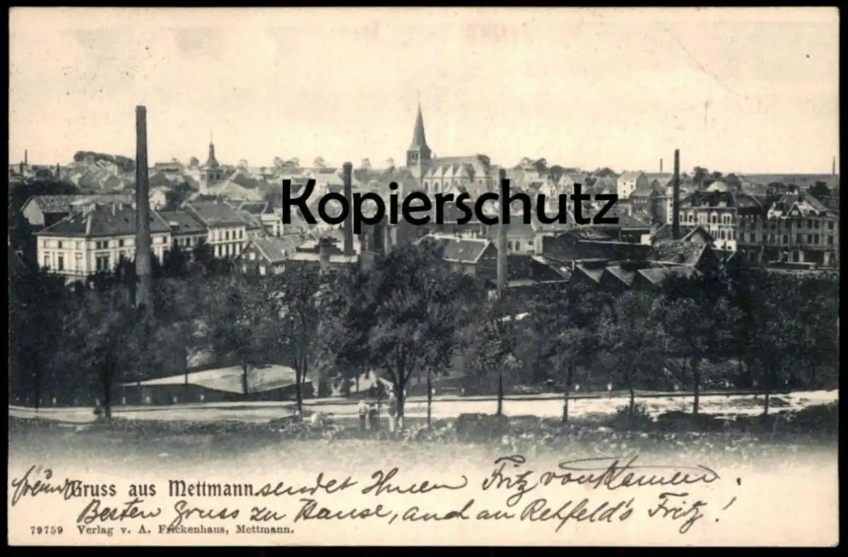 ALTE POSTKARTE GRUSS AUS METTMANN PANORAMA INDUSTRIE KINDERVerlag: A. Frickenhaus, Mettmann