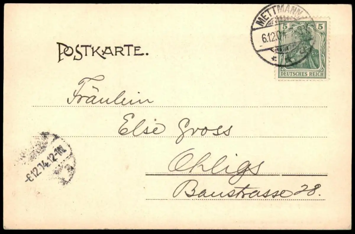 Gelaufen: 06.12.1904 mit Stempel Mettmann nach OhligsErhaltung (s. Scan): sehr gut / 916406