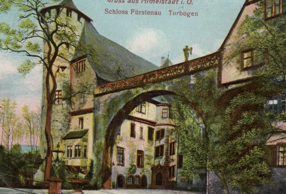 ALTE POSTKARTE GRUSS AUS MICHELSTADT IM ODENWALD SCHLOSS FÜRSTENAU TORBOGEN castle chateau postcard Ansichtskarte cpa AK