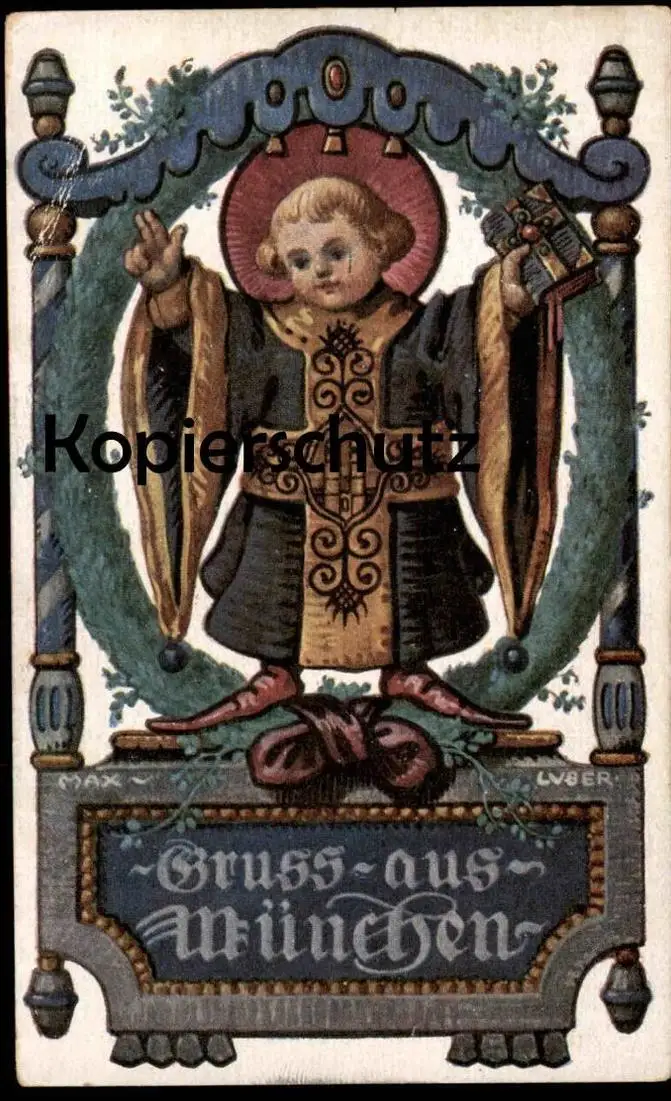 ALTE POSTKARTE GRUSS AUS MÜNCHEN KÜNSTLERKARTE MAX LUBER MÜNCHNER KINDL BIBEL Ottmar Zieher Nr. 26 AK postcard cpa