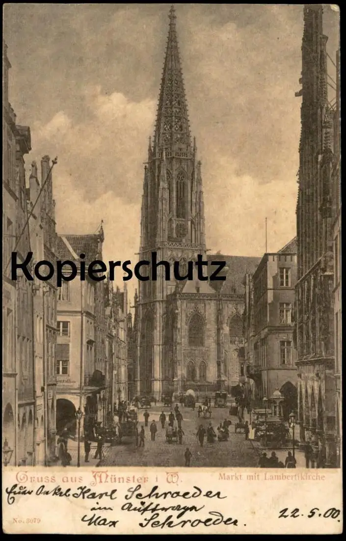 ALTE POSTKARTE GRUSS AUS MÜNSTER WESTFALEN MARKT MIT LAMBERTIKIRCHE