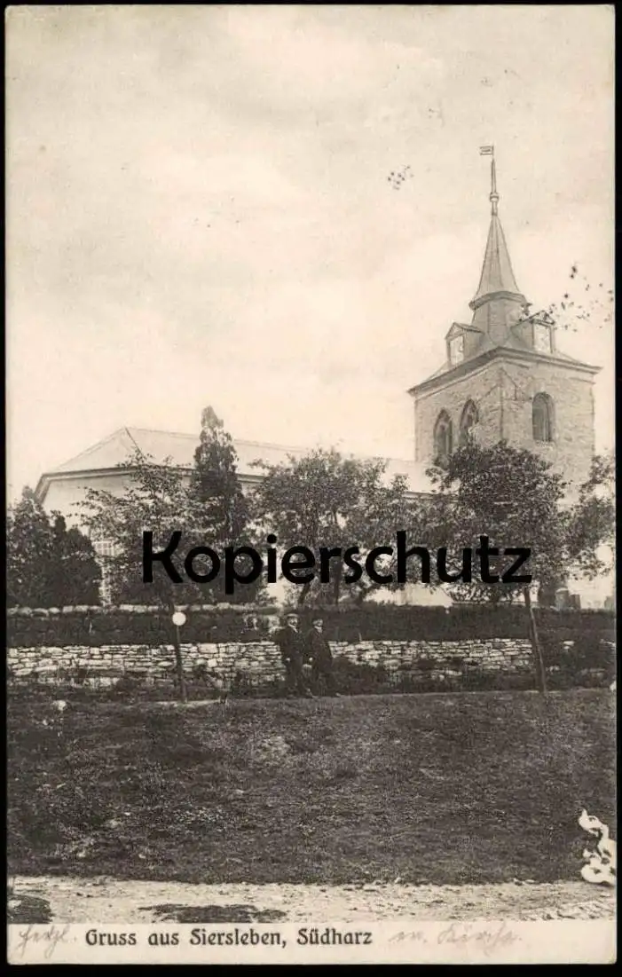 ALTE POSTKARTE GRUSS AUS SIERSLEBEN SÜDHARZ KIRCHE GERBSTEDTVerlag: Franz Wieprich, Colonial- u. Materialwaren-Geschäft, Siersleben; Druck E. Christophel, Berlin