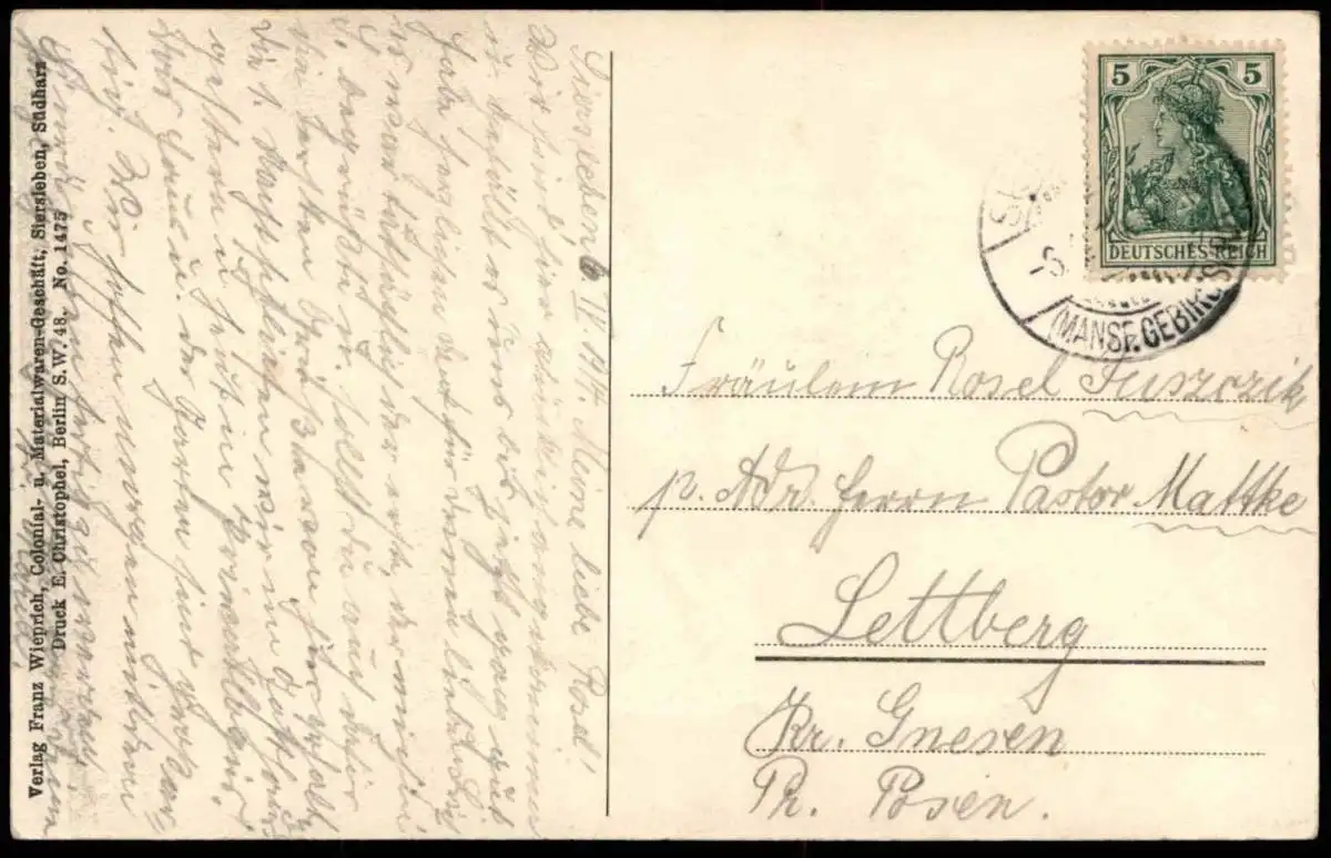 Gelaufen: 06.04.1914 nach Lettberg Kreis Gnesen, Polen