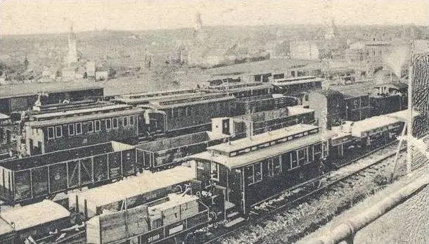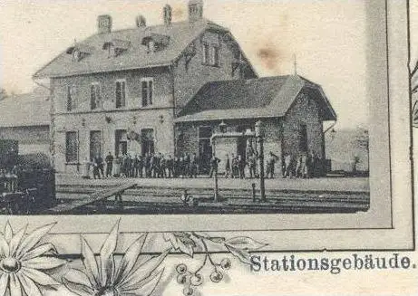 ALTE POSTKARTE GRUSS VOM BAHNHOF SIMMERN ZUG STATIONSGEBÄUDE MARKTSTRASSE
