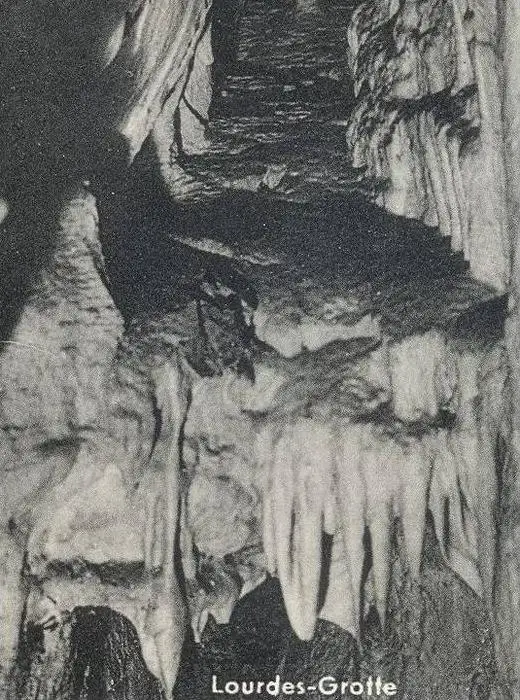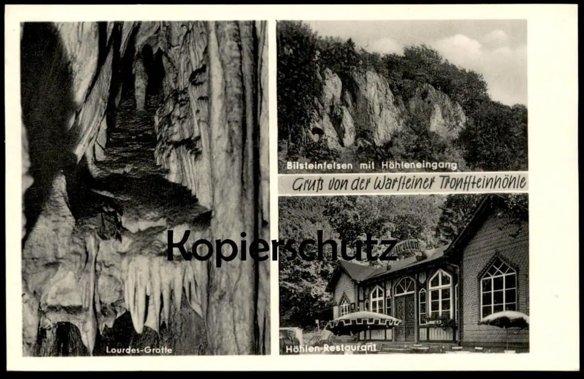 ALTE POSTKARTE GRUSS VON DER WARSTEINER TROPFSTEINHÖHLE LOURDES-GROTTE BILSTEINFELSEN HÖHLEN-RESTAURANT