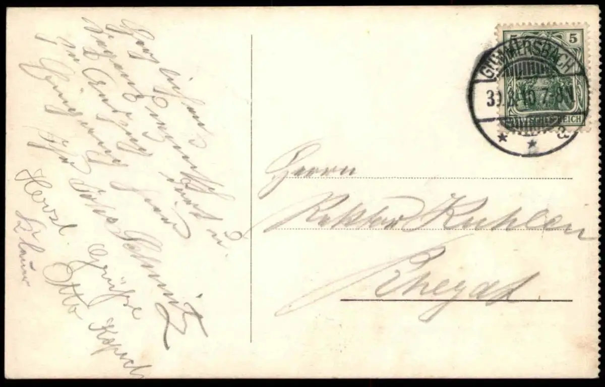 Gelaufen: 30.08.1910 mit Stempel Gummersbach nach Rheydt