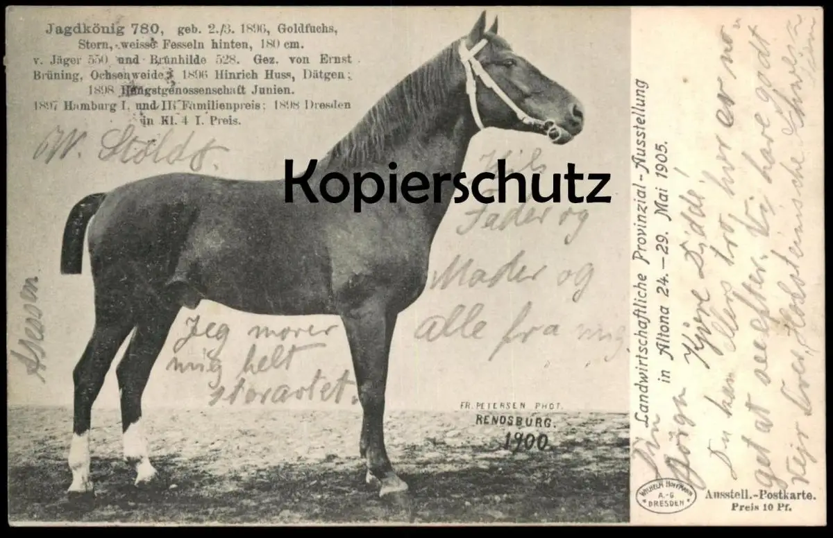 ALTE POSTKARTE HAMBURG ALTONA LANDWIRTSCHAFTLICHE AUSSTELLUNG PFERD JAGDKÖNIG horse racehorse cheval de course Rennpferd