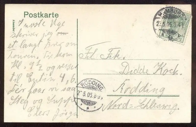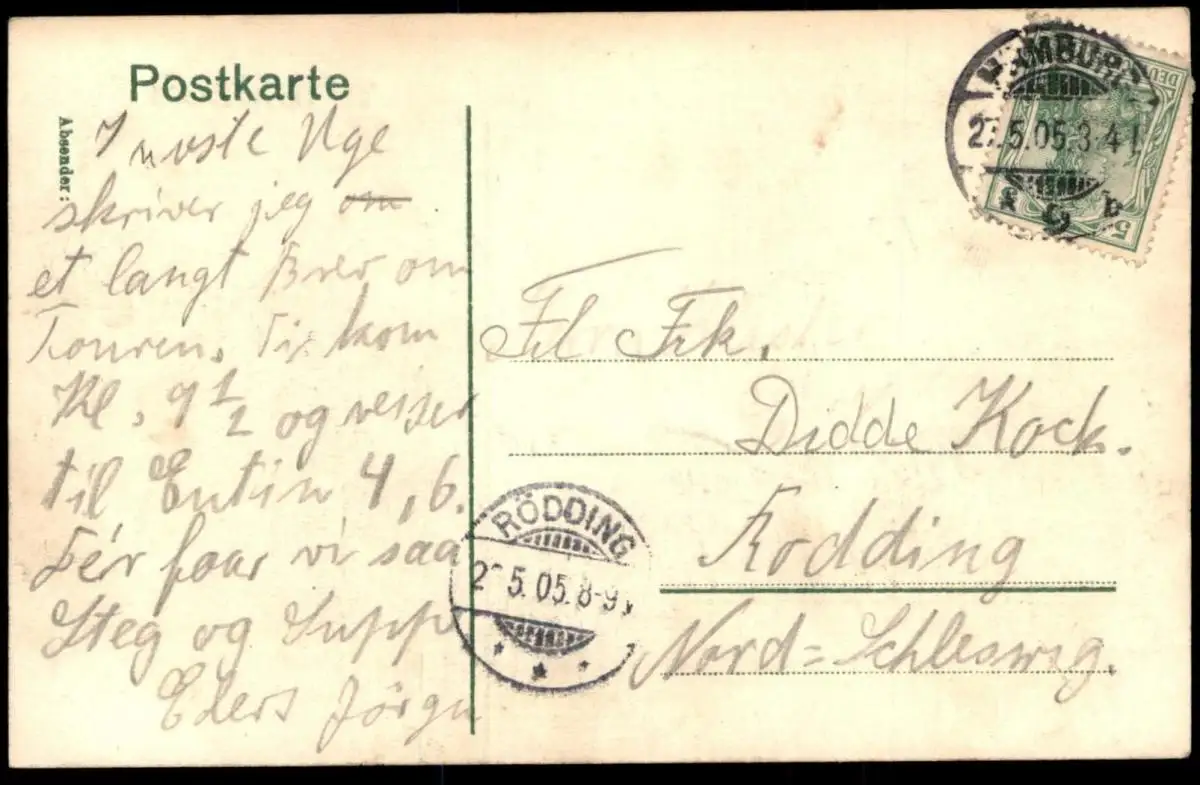 Verlag: Wilhelm Hoffmann, Dresden; Fr. Petersen Photo, RendsburgGelaufen: 27.05.1905 mit Stempel Hamburg nach Rödding, Ankunftsstempel Rödding 28.05.1905Erhaltung (s. Scan): sehr gut / 915456