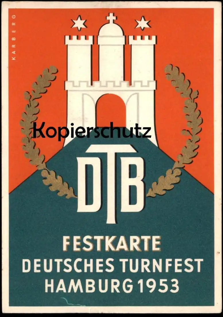 ALTE POSTKARTE HAMBURG DEUTSCHES TURNFEST 1953 DTB FESTKARTE WAPPEN BENUTZUNG SONDERZÜGE TURNVEREIN EITORF SIEG AK cpa