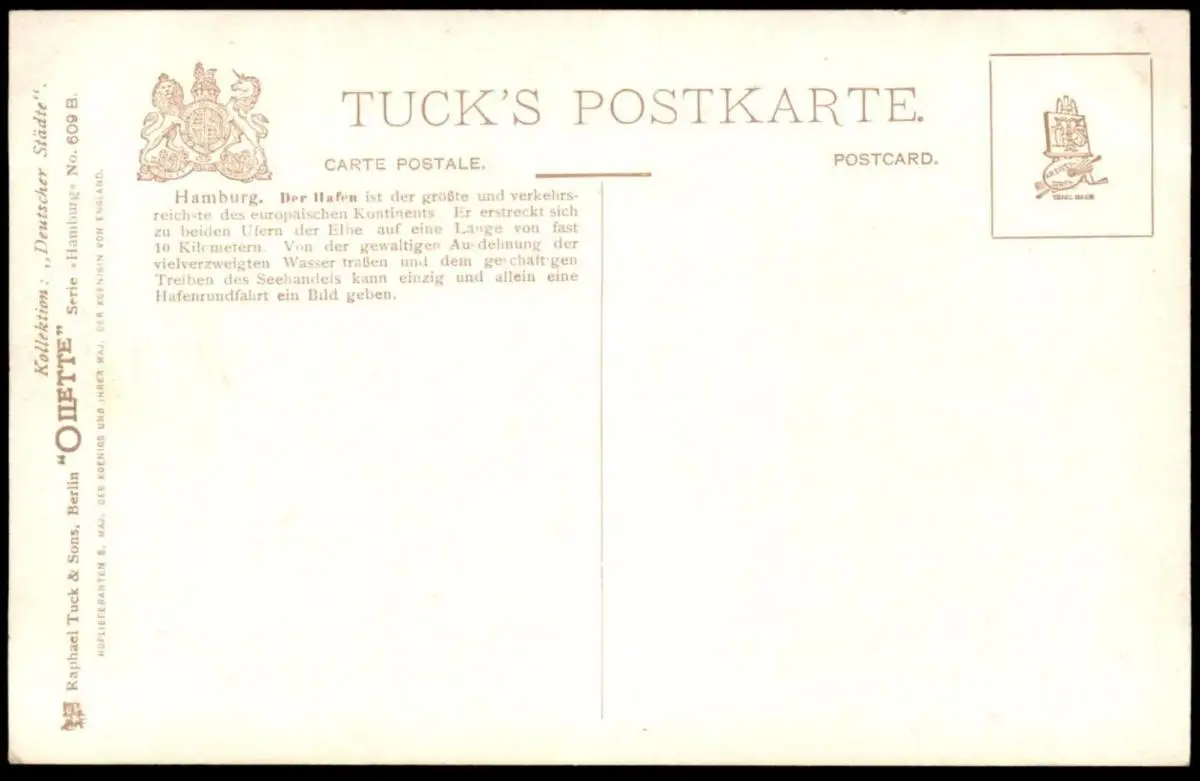 ALTE POSTKARTE HAMBURG HAFEN OILETTE RAPHAEL TUCK DEUTSCHE STÄDTE SERIE HAMBURG NO. 609 B F. V. KAMPTZVerlag: Raphael Tuck