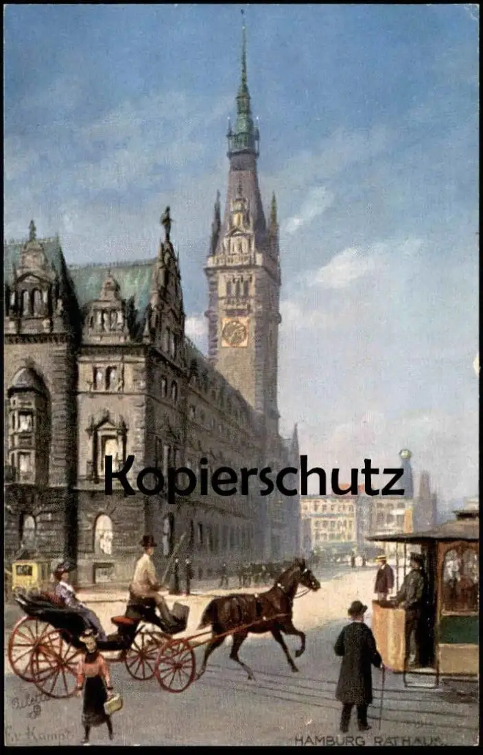 ALTE POSTKARTE HAMBURG RATHAUS OILETTE RAPHAEL TUCK SERIE No. 609 B DEUTSCHE STÄDTE KAMPTZ Kutsche Strassenbahn postcard