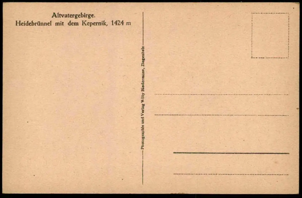 ALTE POSTKARTE HEIDEBRÜNNEL IM ALTVATERGEBIRGE MIT DEM KEPERNIK IM WINTERVerlag: Willy Biedermann, Ziegenhals