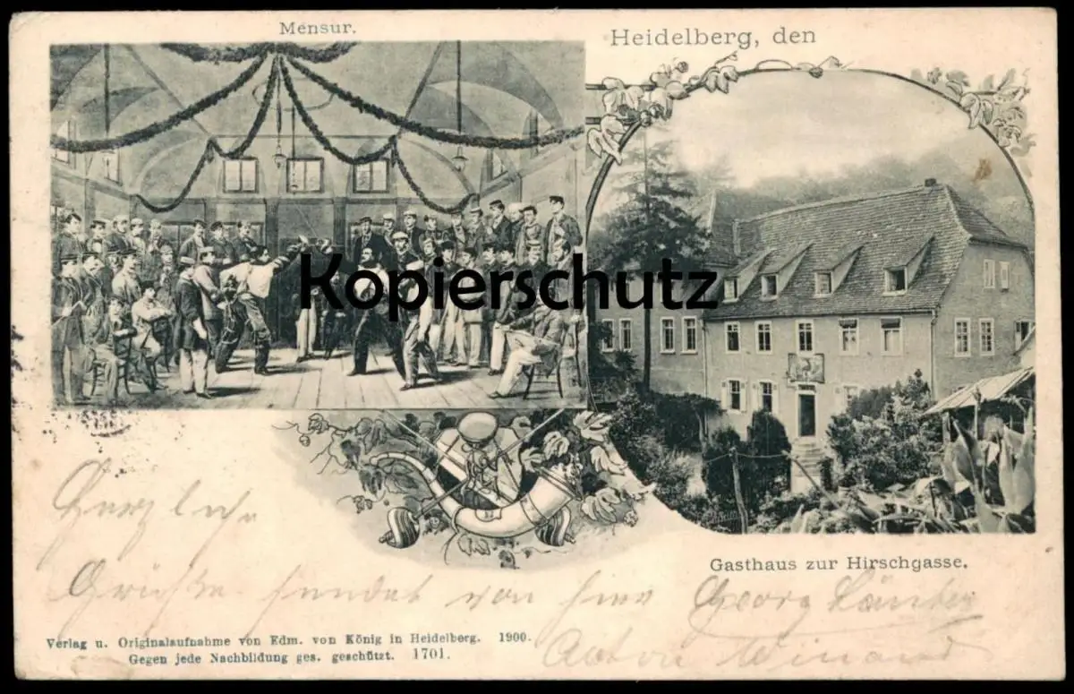 ALTE POSTKARTE HEIDELBERG GASTHAUS ZUR HIRSCHGASSE MENSURVerlag: Edm. von König, Heidelberg 1900