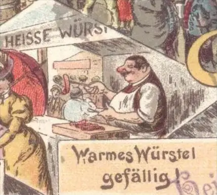 ALTE POSTKARTE HEIDELBERG GRUSS VON DER HEIDELBERGER MESSE DREHORGEL WARMES WÜRSTEL Orgue de barbarie Hand Organ Circus