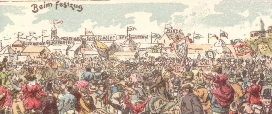 ALTE LITHO-POSTKARTE HEIDELBERG GRUSS VON DER HEIDELBERGER MESSE BEIM FESTZUG