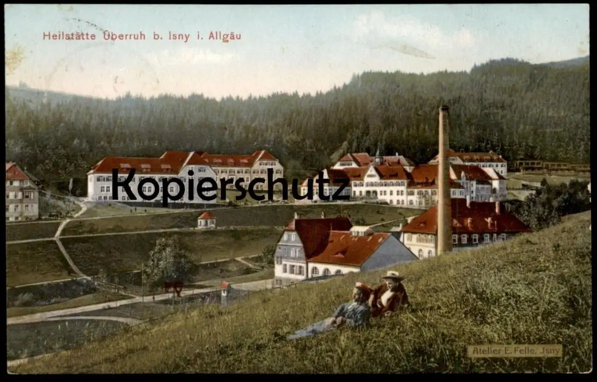 ALTE POSTKARTE HEILSTÄTTE ÜBERRUH ISNY BOLSTERNANG IM ALLGÄU ATELIER EUGEN FELLE ZWEI MÄNNER IM GRAS men AK postcard cpa