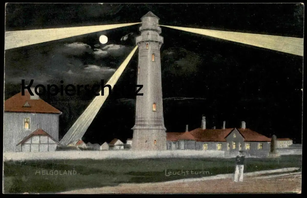 ALTE POSTKARTE HELGOLAND LEUCHTTURM BEI NACHT MATROSE LEUCHTTURMWÄRTER ?