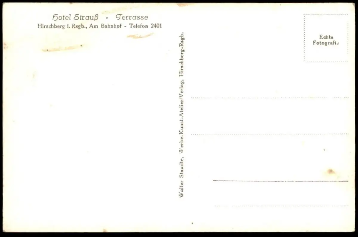 ALTE POSTKARTE HIRSCHBERG SCHLESIEN TERRASSE HOTEL STRAUSS AM BAHNHOF