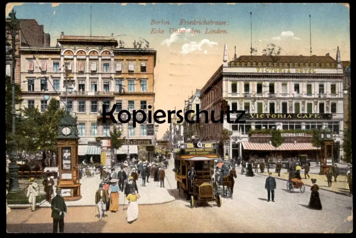 ALTE POSTKARTE HOTEL VICTORIA BERLIN UNTER DEN LINDEN Polizist Allgemeine Berliner Omibus Aktiengesellschaft Linie 4 cpa