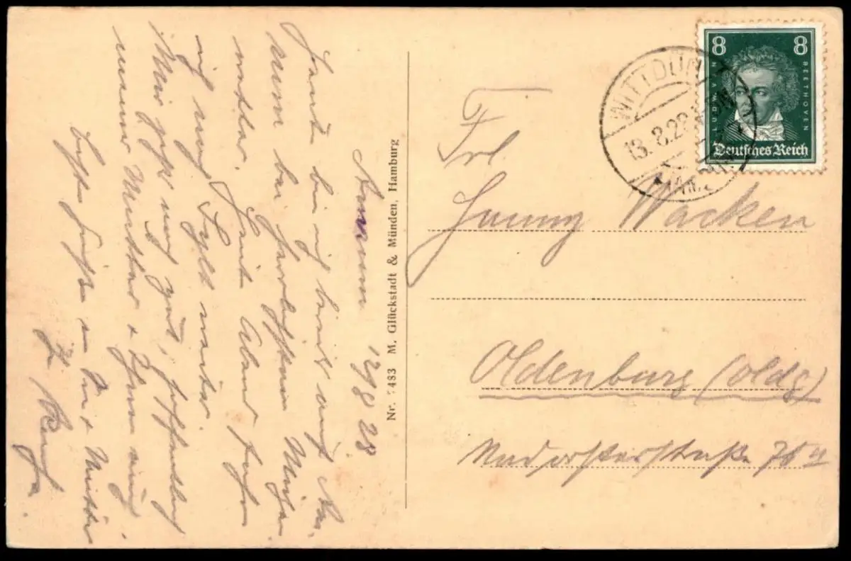 Gelaufen: 13.08.1928 mit Stempel Wittdün nach Oldenburg