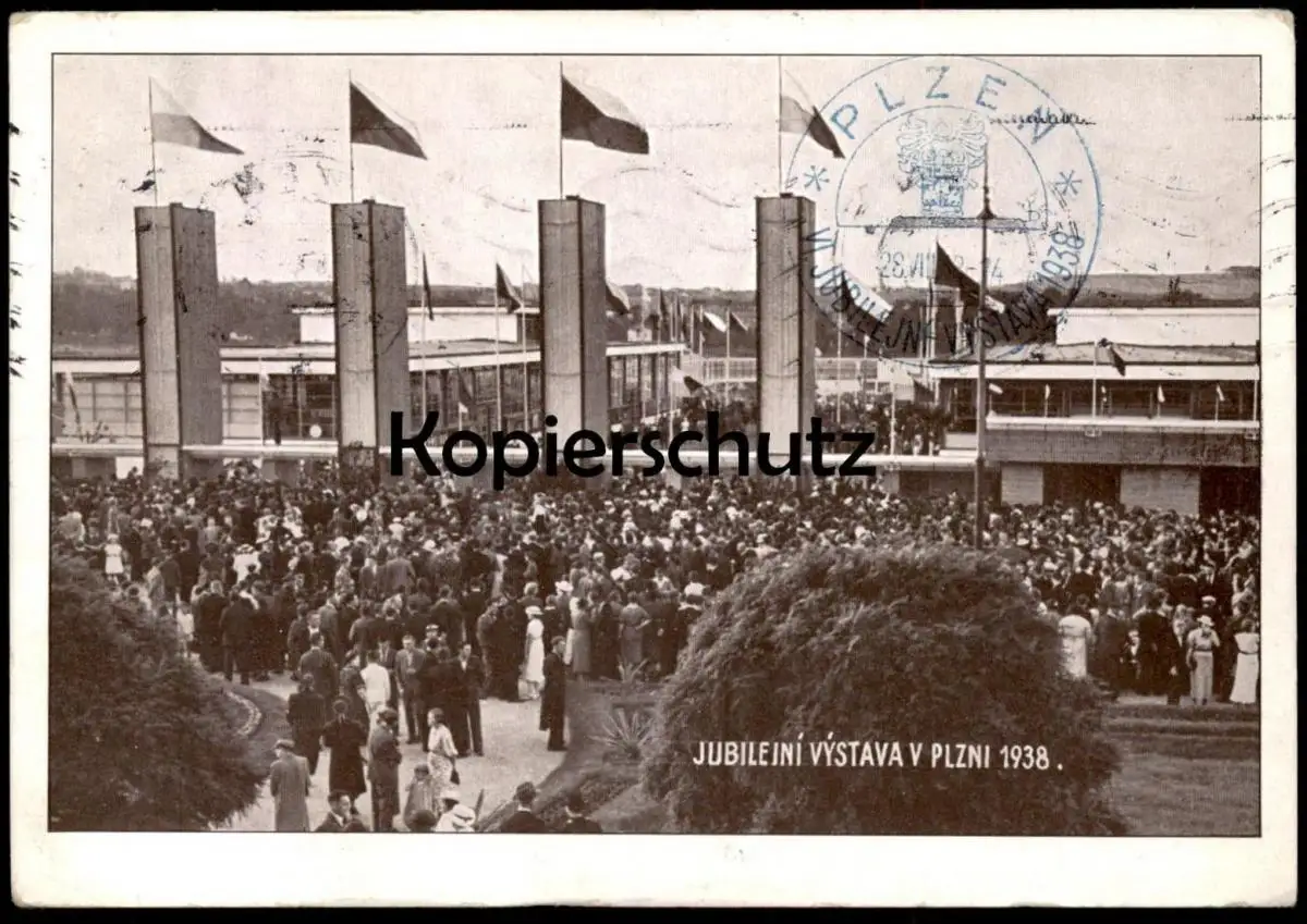 ALTE POSTKARTE JUBILEINÍ VÝSTAVA V PLZNI 1938 PLZEN Verlag: G. P.