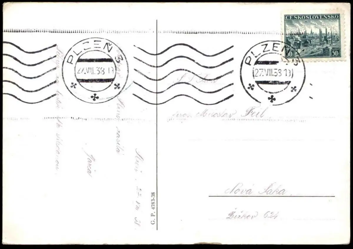 Gelaufen: 27.08.1938 mit Stempel Plzen 3 nach Nova PakaErhaltung (s. Scan): gut / 916387