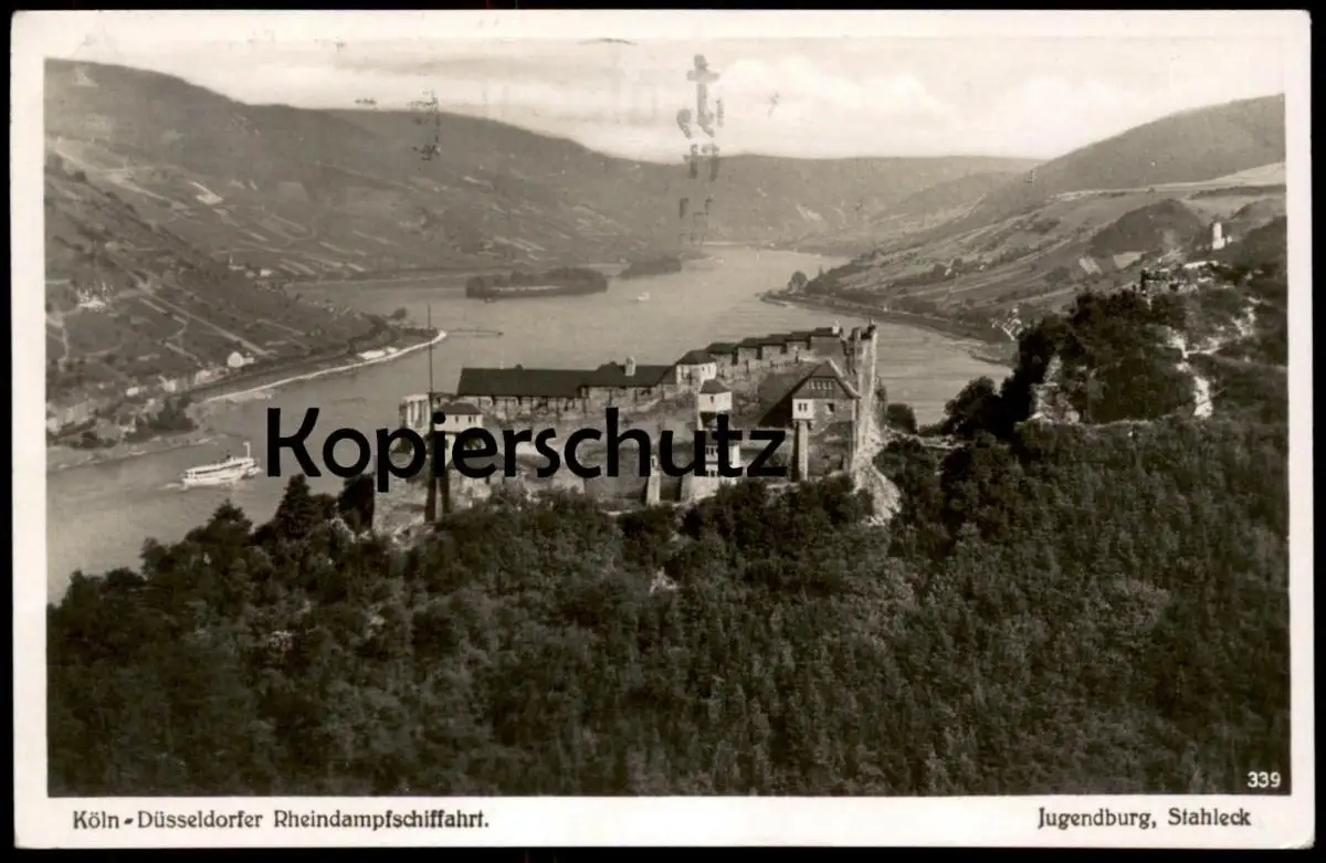 ALTE POSTKARTE JUGENDBURG STAHLECK BEI BACHARACH KÖLN-DÜSSELDORFER RHEINDAMPFSCHIFFAHRT SCHIFFSSTEMPEL OVERSTOLZ KD AK