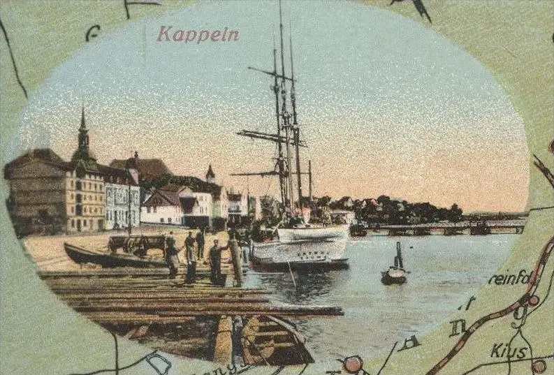 ALTE POSTKARTE KAPPELN SCHLEI DER SCHÖNSTE MEERBUSEN NORDEN BOREN RIESBY BORBY SCHLESWIG ECKERNFÖRDE Landkarte map cpa
