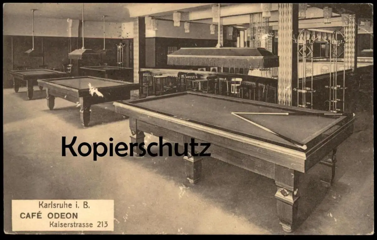 ALTE POSTKARTE KARLSRUHE CAFÉ ODEON KAISERSTRASSE 213 BILLARD Billiards Billiard snooker cpa postcard AK Ansichtskarte