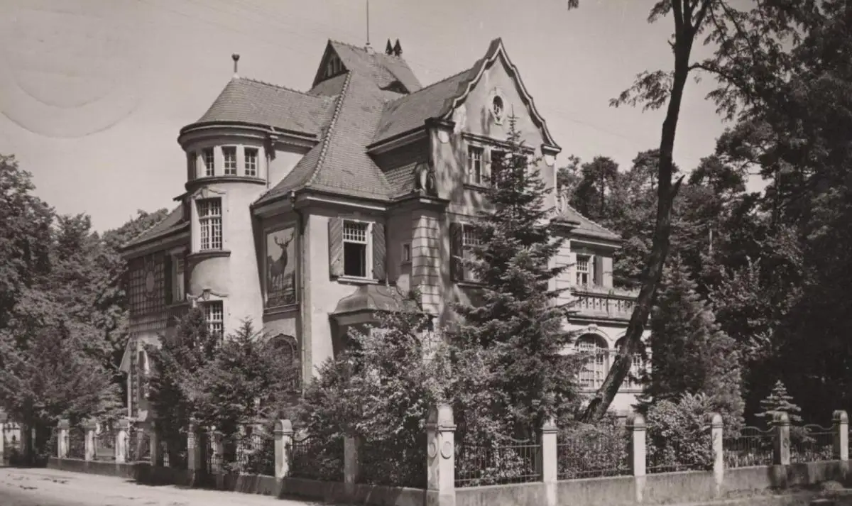 ALTE POSTKARTE KARLSRUHE FORSTAMT 1940 HIRSCH GEMÄLDE AM HAUS PHOTO ROLF KELLNER Ansichtskarte cpa AK postcard