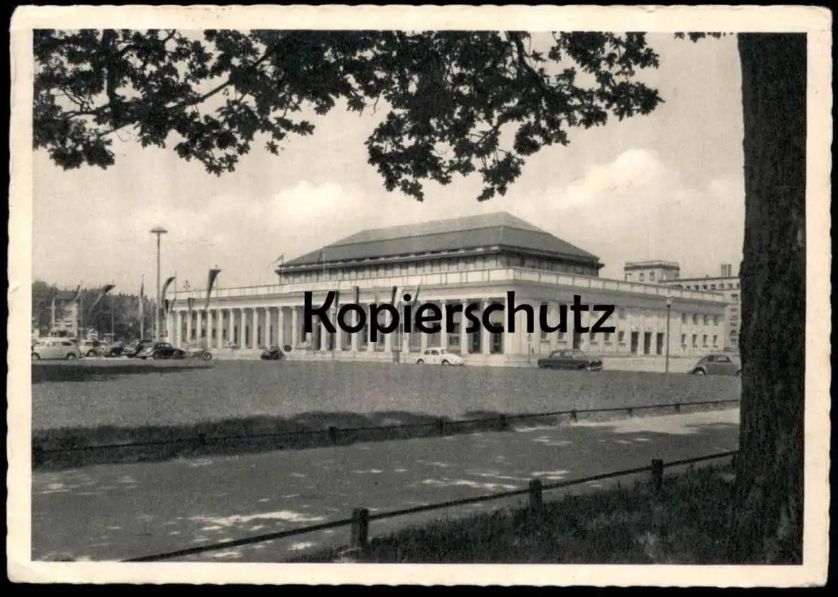 ALTE POSTKARTE KARLSRUHE STADTHALLE MIT FESTPLATZ Autos 1956 Ansichtskarte AK postcard cpa