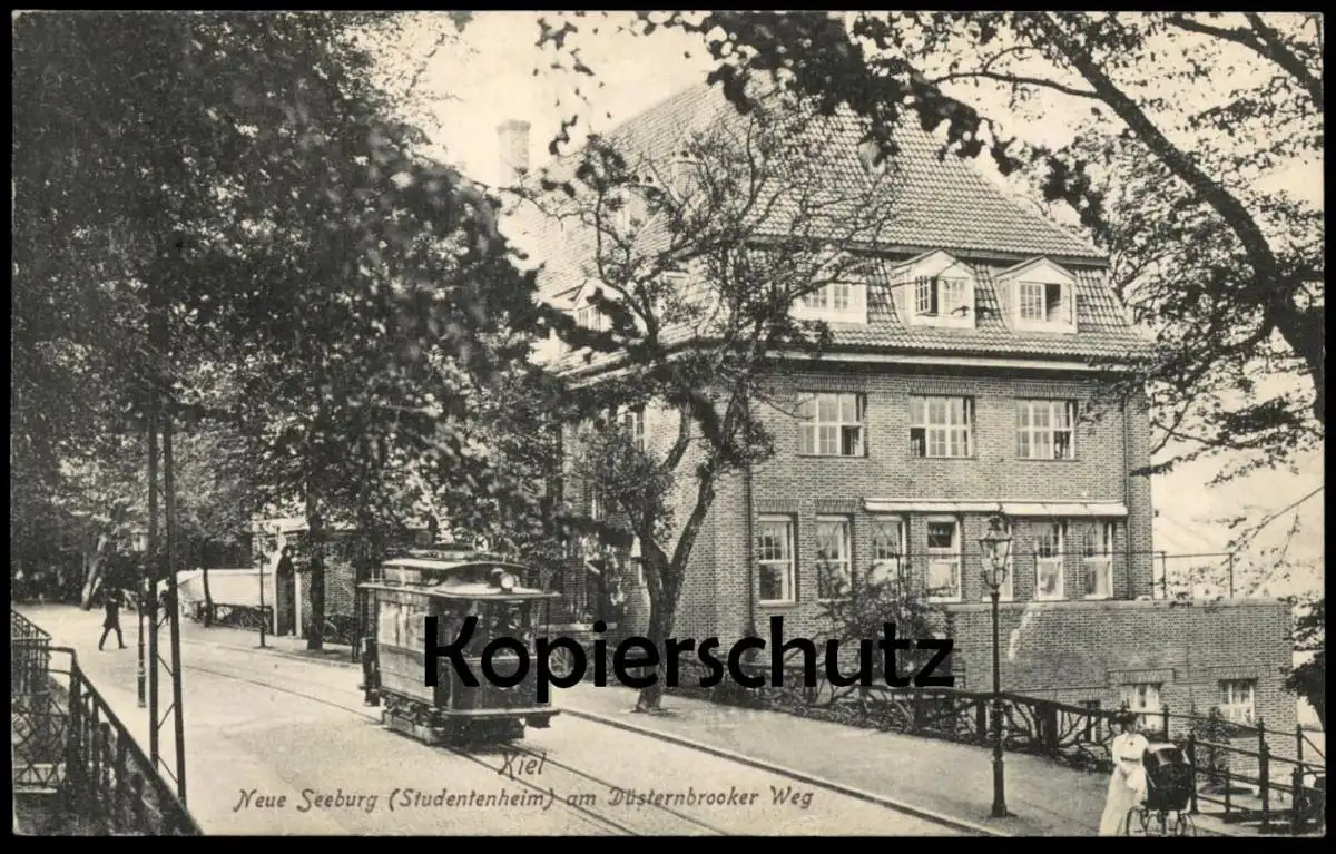 ALTE POSTKARTE KIEL NEUE SEEBURG STUDENTENHEIM AM DÜSTERNBOOKER WEG STRASSENBAHN tram tamway Ansichtskarte postcard cpa