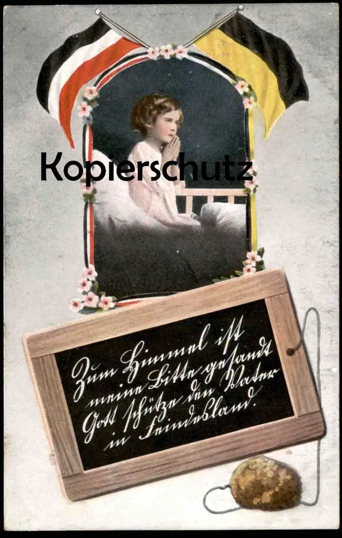 ALTE POSTKARTE KIND IM GEBET 1. WELTKRIEG GOTT SCHÜTZE DEN VATER IN FEINDESLAND PATRIOTIKA Patriotismus Ansichtskarte