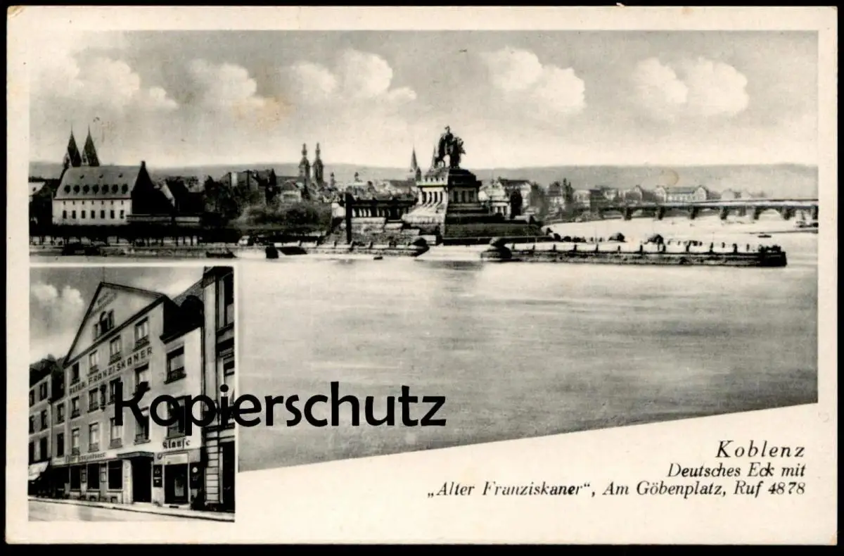 ALTE POSTKARTE KOBLENZ 1943 DEUTSCHES ECK MIT ALTER FRANZISKANER GASTSTÄTTE AM GÖBENPLATZ Ansichtskarte cpa postcard AK