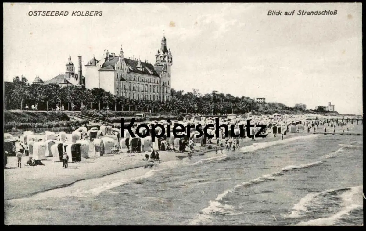 ALTE POSTKARTE KOLBERG BLICK AUF STRANDSCHLOSS COLBERG KOLOBRZEG POMMERN beach bathing bath Ansichtskarte cpa postcard