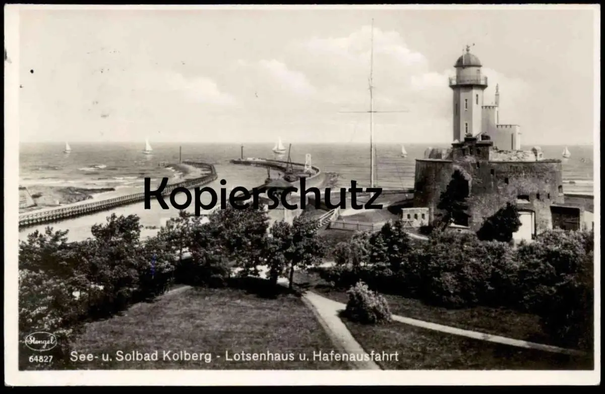 ALTE POSTKARTE KOLBERG LOTSENHAUS & HAFENAUSFAHRT 1936 COLBERG KOLOBRZEG POMMERN See- und Solbad Stempel Bauerhufen AK