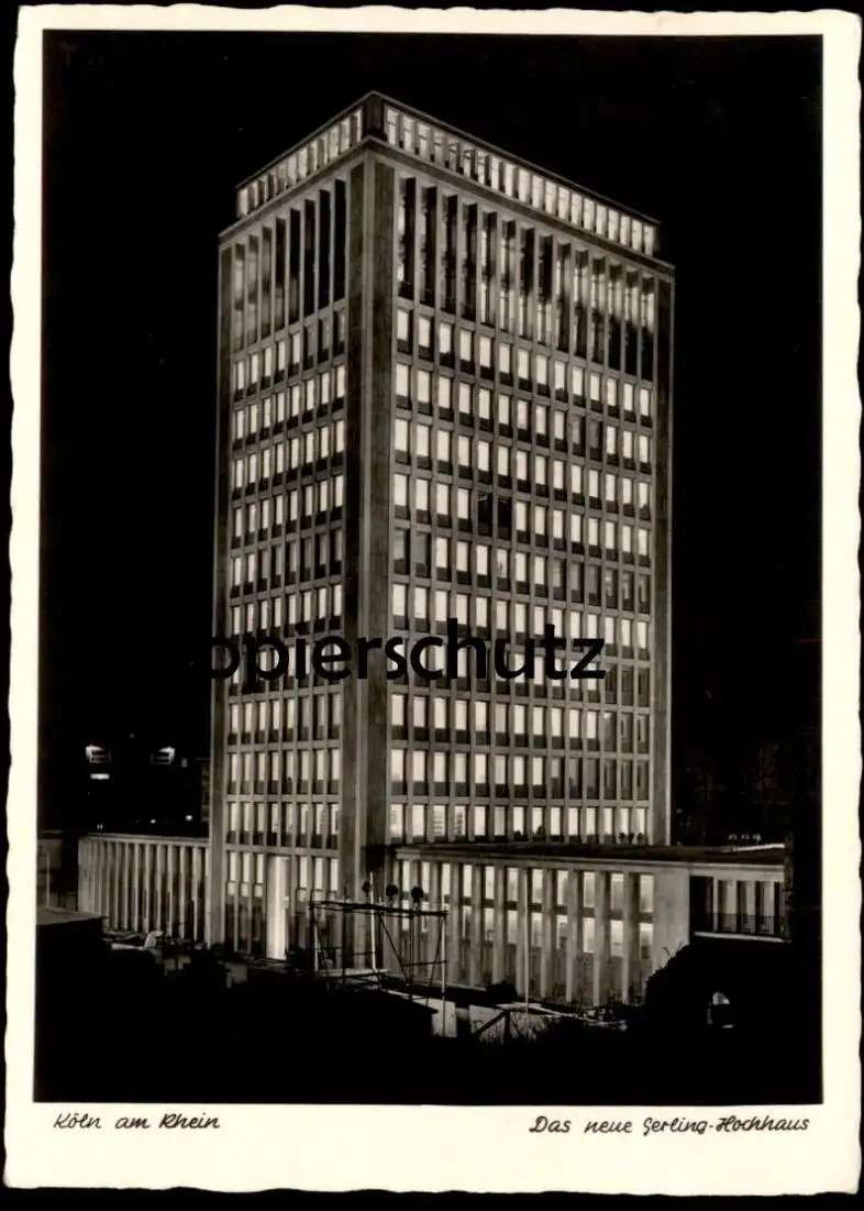 ALTE POSTKARTE KÖLN AM RHEIN DAS NEUE GERLING-HOCHHAUS BEI NACHTVerlag: H. Sühwold, Köln; Aufnahme H. u. C. Hartzenbusch