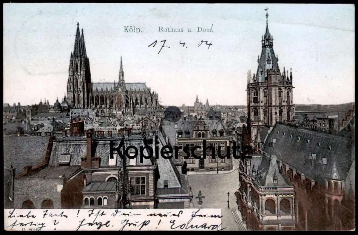 ALTE POSTKARTE KÖLN DOM UND RATHAUS 1904 PANORAMA GESAMTANSICHT Stempel Cöln Ansichtskarte AK postcard cpa