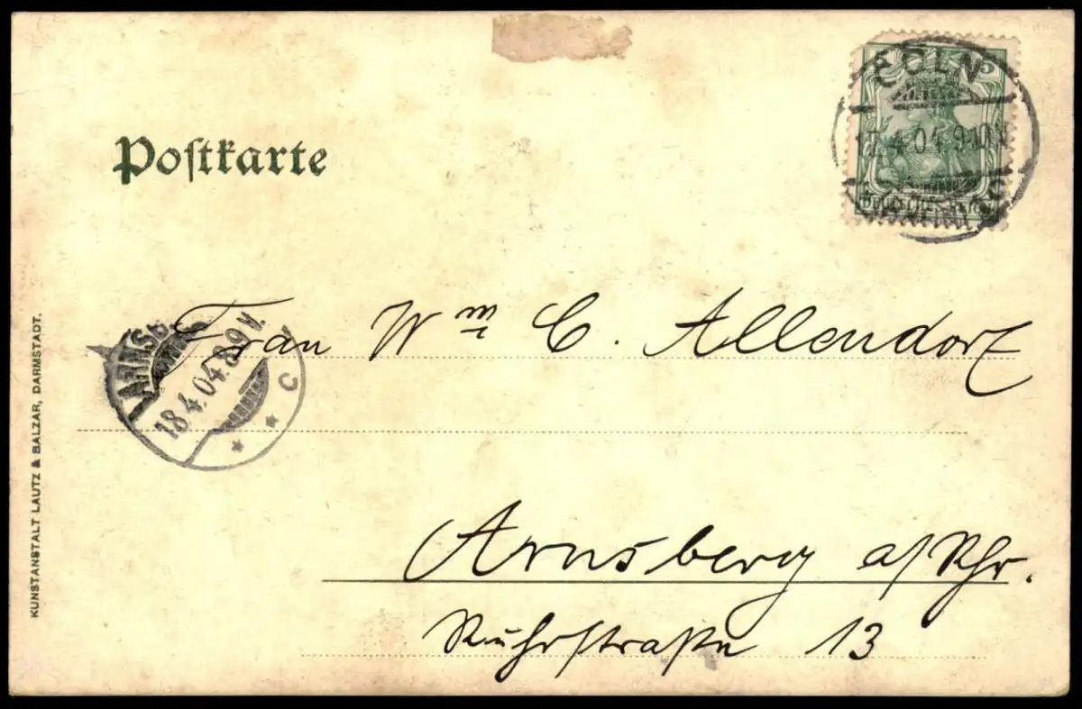 Gelaufen: 17.04.1904 mit Stempel Cöln nach Arnsberg