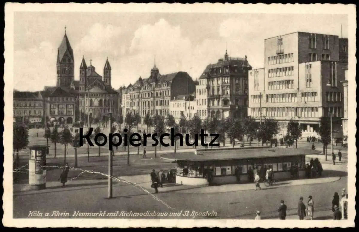 ALTE POSTKARTE KÖLN NEUMARKT MIT RICHMODISHAUS UND ST. APOSTELN KIOSK BÜDCHEN Cologne Cöln cpa postcard AK Ansichtskarte