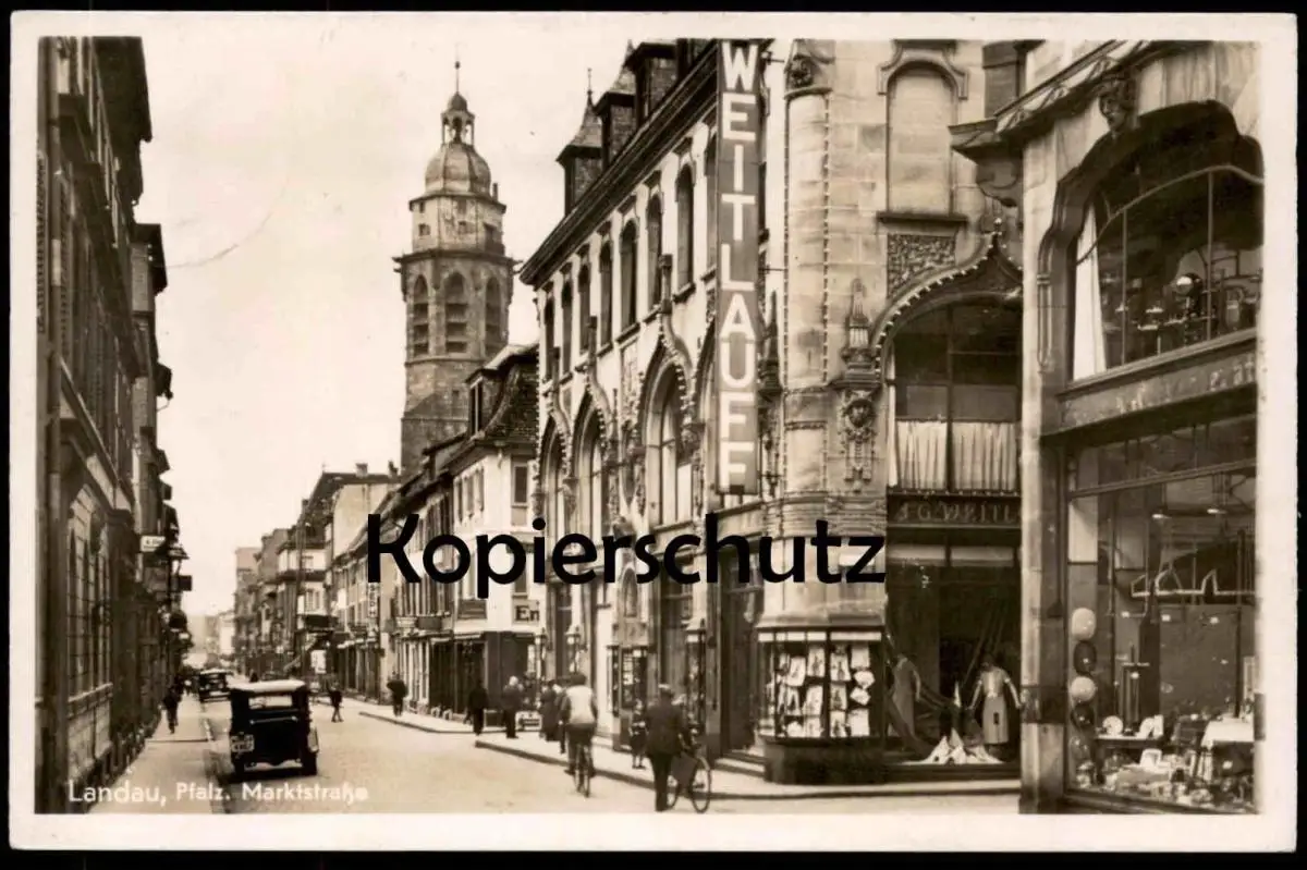 ALTE POSTKARTE LANDAU PFALZ MARKTSTRASSE GESCHÄFTE 1940 GESCHÄFT WEITLAUFF JOSEPH DAMENHÜTE Ansichtskarte postcard cpa