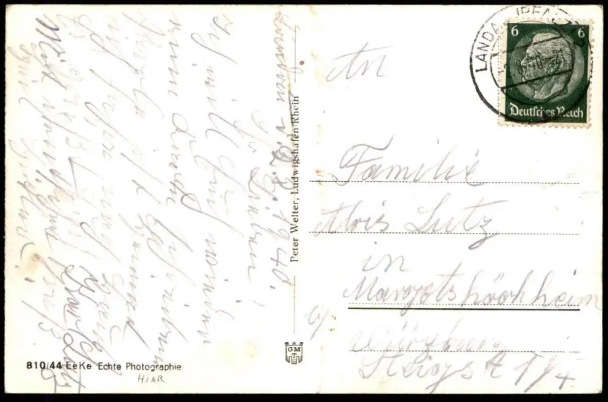 Gelaufen: 02.08.1940 mit Stempel Landau nach Margetshöchheim Würzburg