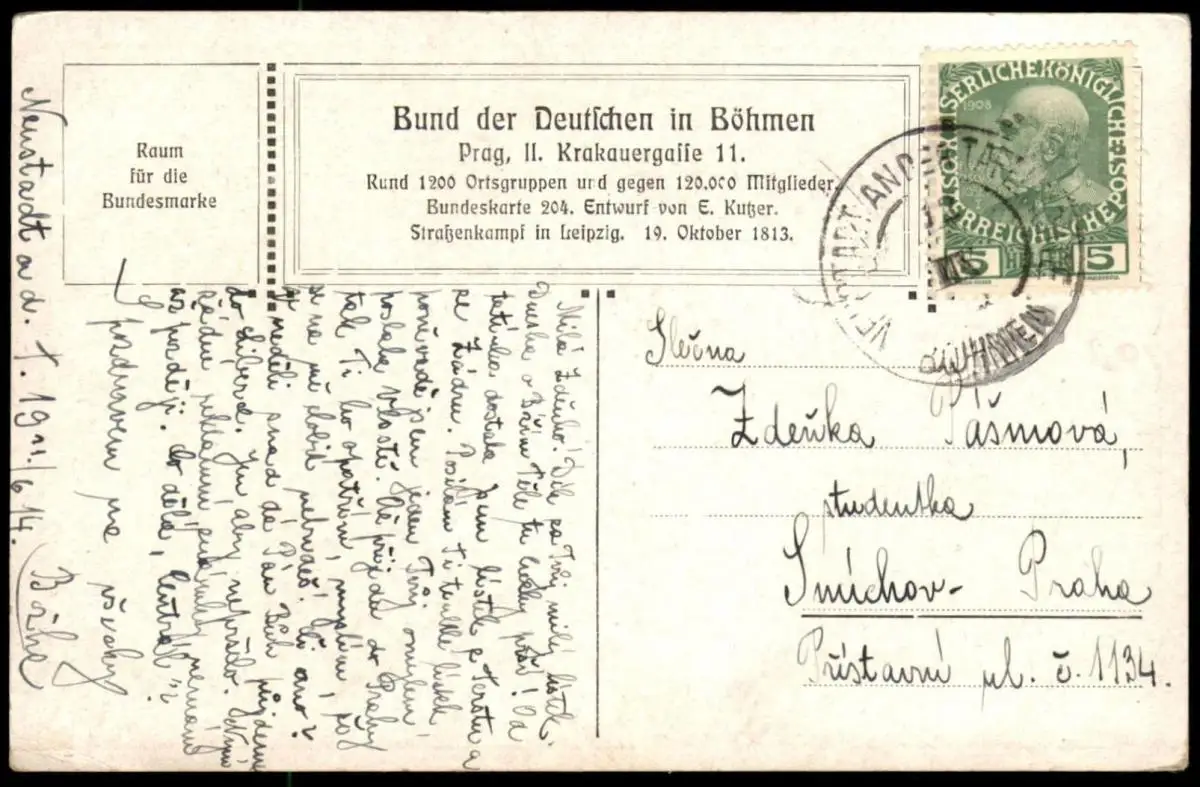 Verlag: Bund der Deutschen in Böhmen, PragGelaufen: 19.06.1914 mit Stempel Neustadt an der Tafelfichte nach Smichov PragErhaltung (s. Scan): gut / 917193