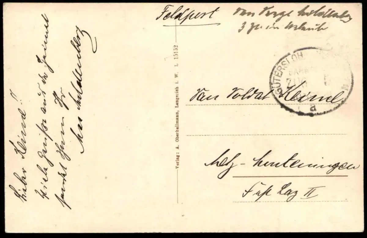 Gelaufen: xx.xx.19xx mit Bahnpoststempel Güterloh Zug…